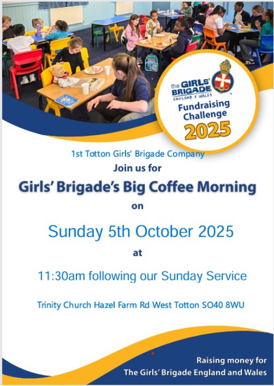 The baked goods that the girls will be making on the Saturday will be for sale Sunday after the service where we are trying to raise funds as part of the Great Big GB Coffee morning for the company and GB Nationally.
