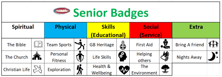See the table below for a typcial badge programme.